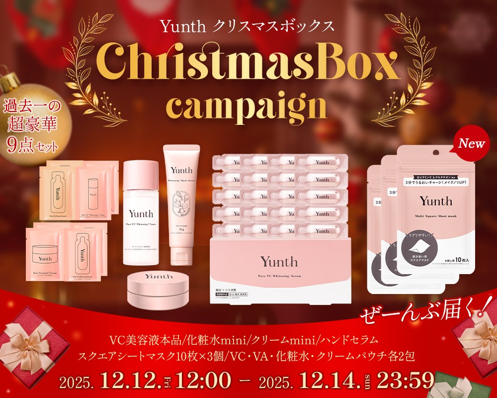 Yunth(ユンス)は、生VCシリーズを中心に人気のスキンケアブランドで、定期的に内容が変わるキャンペーンセットが用意されています。