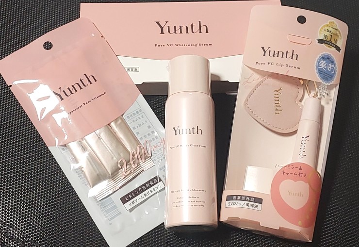 - Yunth(ユンス)の生VC美白※美容液(1箱)はキャンペーンに含まれているので、プラスαの豪華商品特典が気に入ったら購入がおすすめ※メラニンの生成を抑え、しみ・そばかすを防ぐ